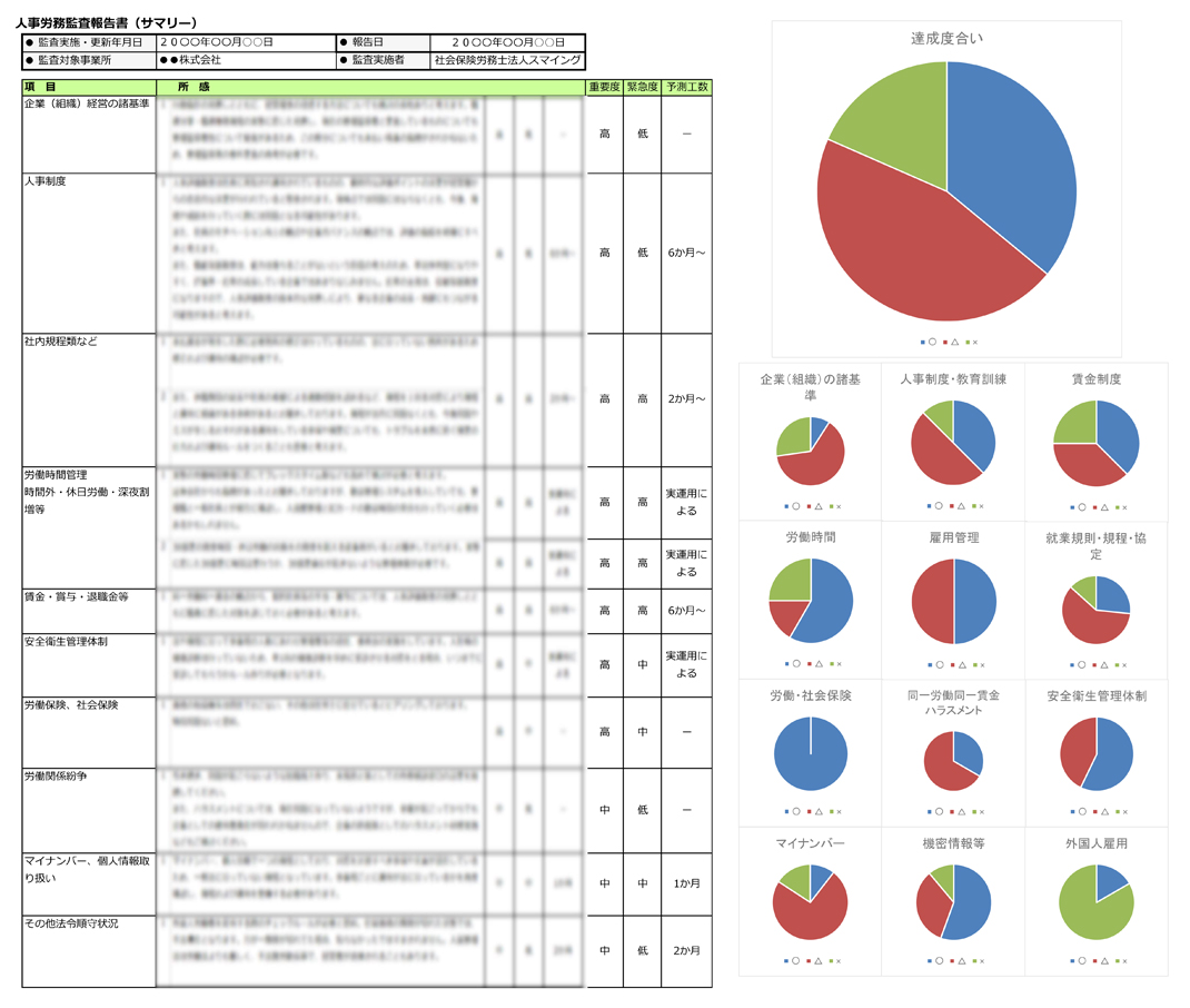 - 労務監査を実施することにより、自社の労務整備状況がはっきりとした。